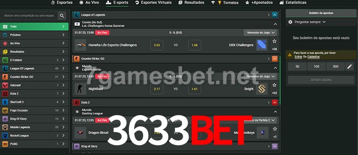 O 3633bet oferece uma grande seleção de opções de apostas em e-sports com probabilidades competitivas